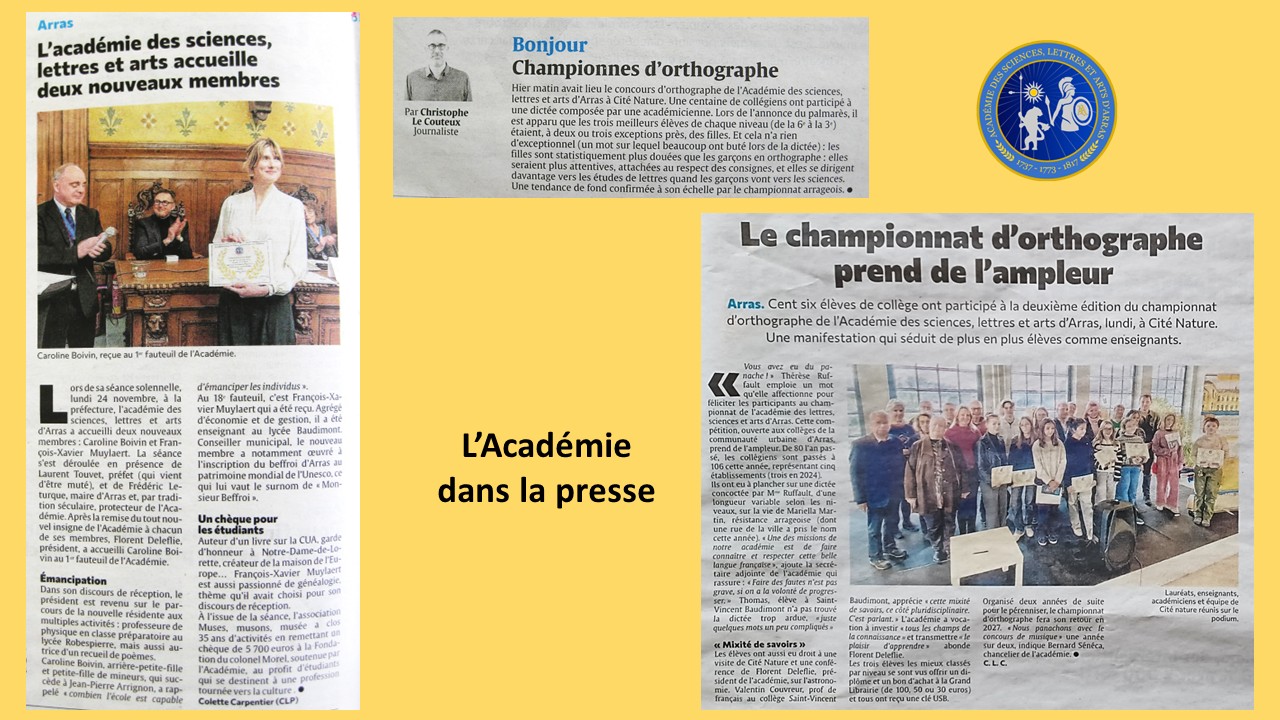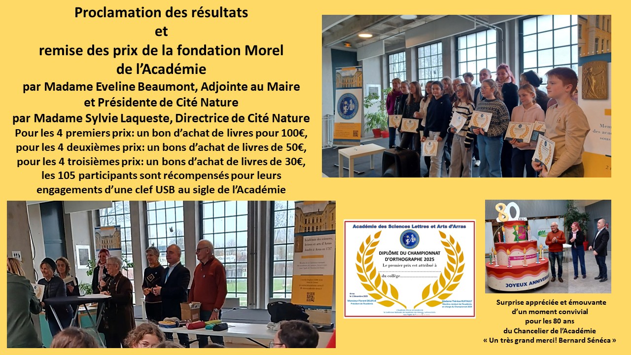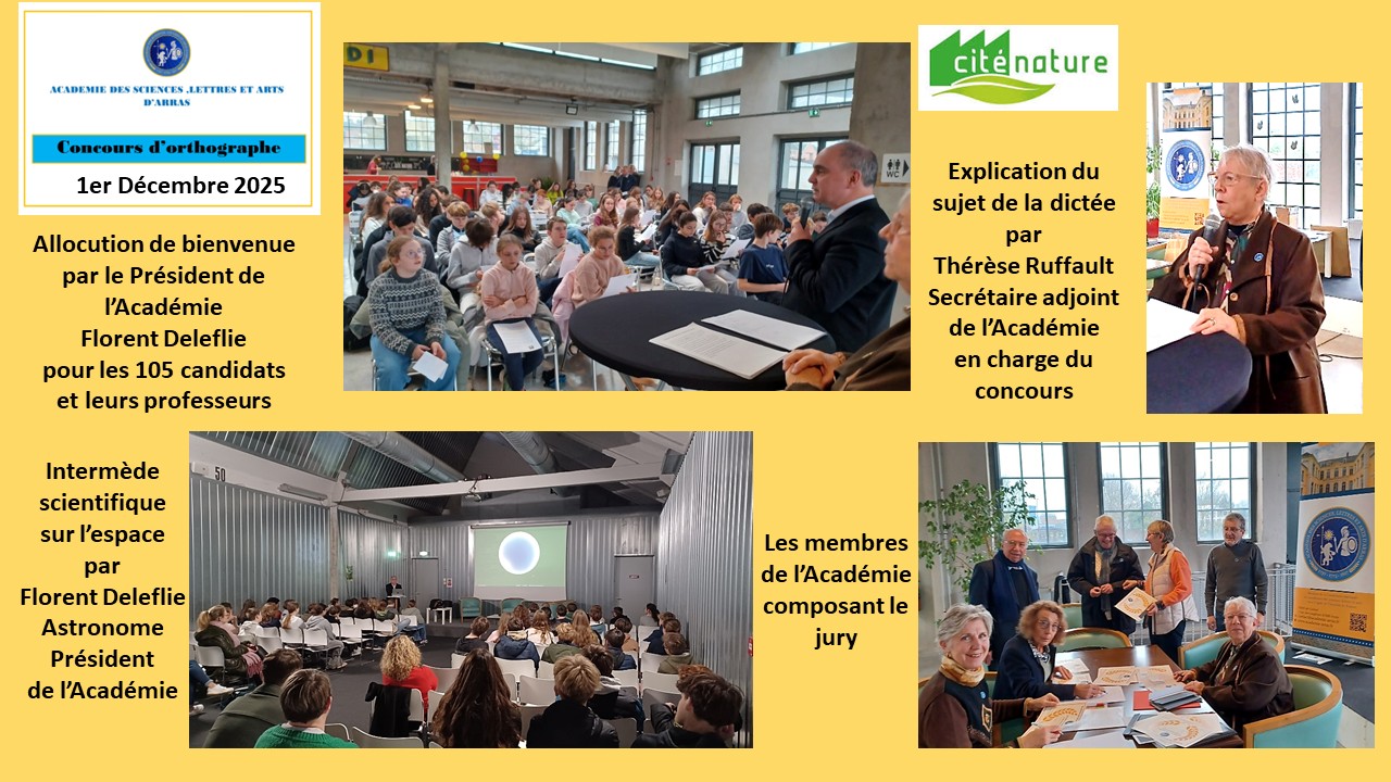 Madame Thérèse Ruffault, académicienne, a organisé pour la deuxième fois, un concours d'orthographe destiné aux collégiens des établissements arrageois. Ils étaient encore plus nombreux qu'en 2024, 105, à se rendre, enthousiastes, à Cité Nature qui accueillait l'événement.